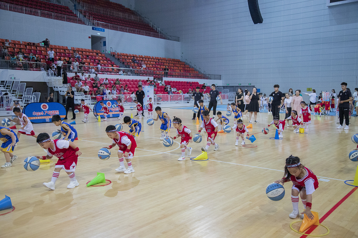 活动现场,萌娃变身:此刻,萌娃们化身篮球小将,在篮球操中展示团结协作、整齐划一,在团队竞赛中体现速度与技术,在3V3中展露勇敢与拼搏。属于孩子们的高光时刻:今天的篮球嘉年华活动,每一分每一秒都是属于向往篮球运动、渴望梦想与胜利的篮球少年们的高光时刻。