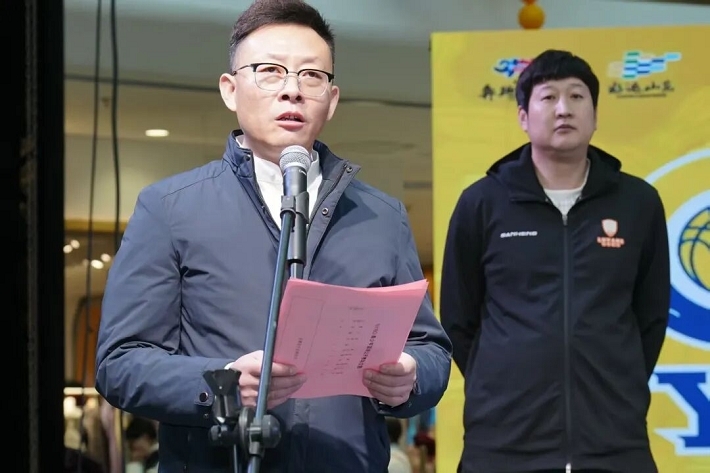 随后,市体育事业发展中心党组书记丁涛主任代表领导讲话:首先对赛事的举办表示祝贺,对滕州路扬篮球俱乐部及裁判员、工作人员的辛勤付出表示感谢!其次,深度肯定了滕州路扬篮球俱乐部作为枣庄头部青少年篮球培训机构,为本地篮球事业快速健康发展贡献突出。并表示赛事的举办对提升青少年身心素质、储备篮球人才、繁荣篮球运动及提振全民健身氛围意义重大。最后,寄语选手发扬“友谊第一、比赛第二”的精神,望裁判员公平执裁、工作人员精细保障,助力赛事圆满完赛,为“中华善城、现代滕州”建设再添新力。